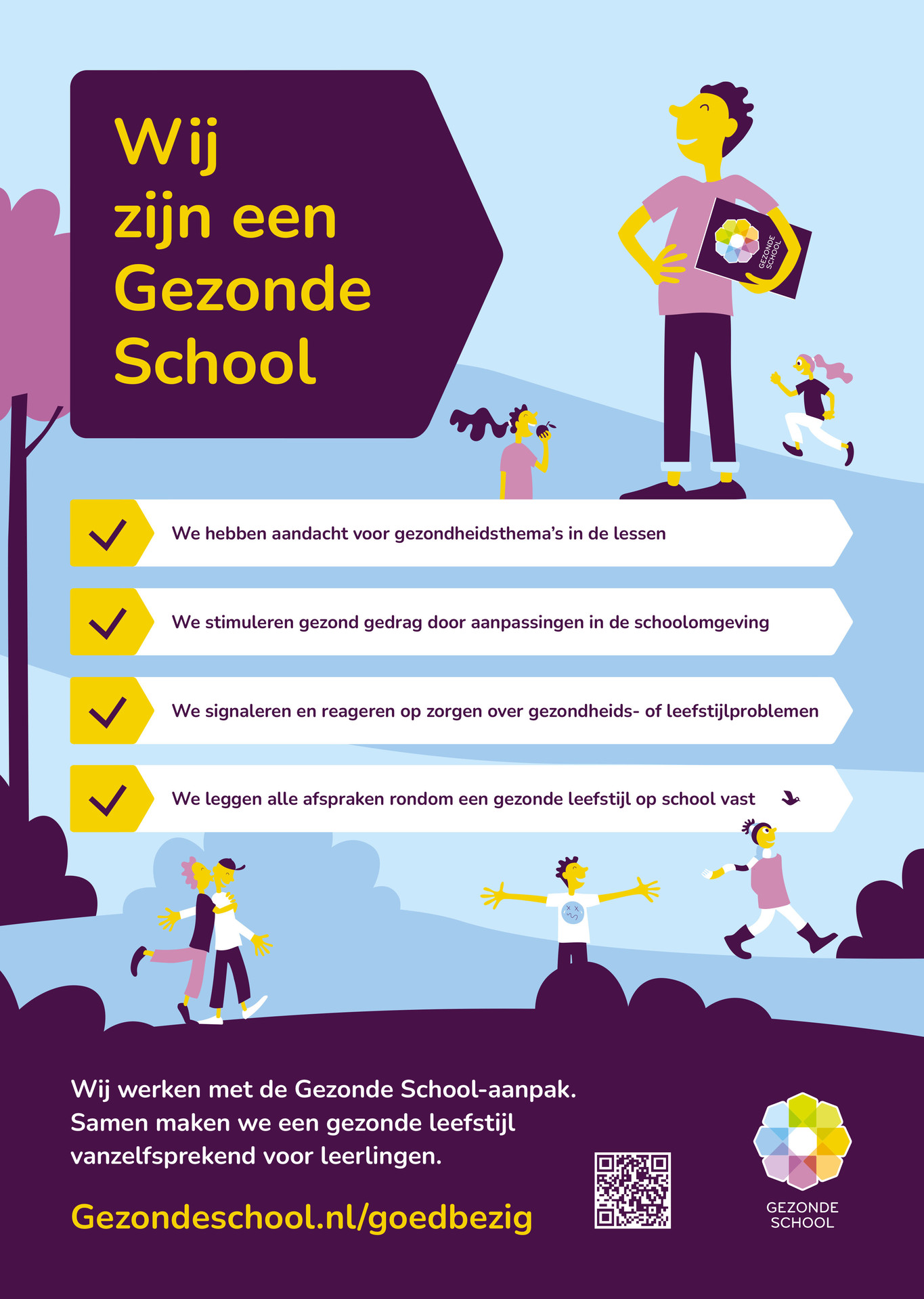 Onze school heeft het vignet Gezonde School behaald en mag zich nu drie jaar lang Gezonde School noemen. Wij zijn trots op dit behaalde resultaat!